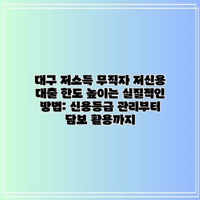 대구 저소득 무직자 저신용 대출 한도 높이는 실질적인 방법: 신용등급 관리부터 담보 활용까지